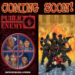 The comic is due to be an ongoing series, published every 2 months, featuring Chuck, Flav, Professor Griff and DJ Lord, with some special guest stars promised. The series will be written and illustrated by Adam Wallenta and Chuck D himself and a special preview edition [issue 0] is available through Diamond Comic Distribution or American Mule.