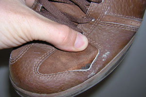 Day 10: Well, that worn leather got worse and now it has torn slightly like the broke skin of a fruit or something. The shoes are still relentless in their grip though. The sole has also worn flat, but no holes yet. It does make it tricky trying to climb up slippery skatepark banks though.