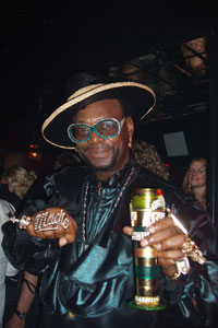 Celebrity misogynist, Don Magic Juan self-proclaimed Pimp was in attendance with two young ladies draped on each arm and about $5000 of bling on each hand. Apparently the pimp met Andrew Reynolds recently and an Emerica shoe collaboration is in the mix! The Bishop (as he likes to be known) really is a pimp, at least he does a good job of acting like one judging by the way he man-handles the women, The most bizarre thing is that the ladies love it and were literally fighting for his attention. I don’t think they noticed him carrying a Yellow Page plastic bag all night though… Not so glamorous, is it?