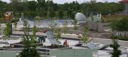If ever you get invited to Winnipeg, Canada, say “Yes!” The city is about to open a brand new concrete skatepark the Forks that spans 44,000 square feet and has replicas and inspirations drawn from Barcelona, Japan and San Fransisco. Top the ledges with granite and spin out on the 17 foot cradle and you’re only halfway there. A special feature to the Newline designed park is a “magic carpet” concrete wave thing!?!