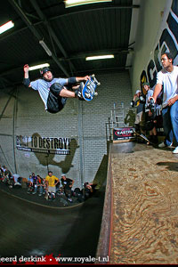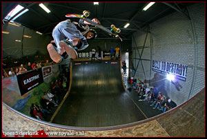 The vertramp was smaller so everybody had to ‘feel’ the vert again. And yes, after a while everybody was in the zone and skated their asses off. Crazy tricks, as inverts, big ass backside airs tweaked out, nosegrinds and a lot of switch skatin’ was going on.