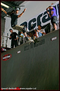 Anyway, The 17 years young man from Brussels had the most skills and got first place, Simon Stachon. It was Simon’s second day on Crail trucks. In second place, all the way from Brazil, Otavio Neto. Man can he do a lot of nolly tricks in a vertramp. And yes, third place is the man from Holland, Bob Joosten. Our new Dutch champion in vert skating.