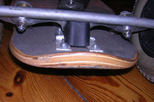 Instinctively dirt boards rhyme with juggling balls, and boomerangs for me. I know that is a prejudice, but all my prior experience of 180mm wheels, 25 inch wheelbases and 10 ply planks has been hanging from the wall of a kiteshop… Oh well. Tim insisted I try one of his unique Freestyle All Terrain boards and once I read the brochure and watched the demo videos I knew I couldn’t refuse. You see, the special design quality to these boards is the fact that the trucks are fixed on top of the deck with a foot strap behind each axle. This technique means the board is low enough to the ground that you can actually use the concaved tail to pop tricks and slide across surfaces.