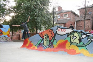 This new skate park was built at the back end of April 2006 in Nottingham at Forest Fields, kind of between Radford and St Anne’s (click here for a local map).