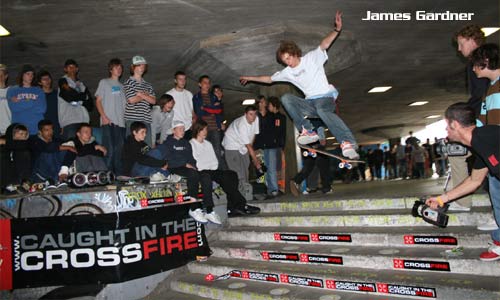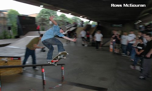 This weekend was by far the most enjoyable event that Crossfire has been involved in since we have started. The hangovers we brought to the park slowly whittled away once the comp kicked off and the skating was mental. This event was filled with about 250 people, a much smaller crowd than usual due to the Live 8 event in West London, so a lot of people bottled it cos of the traffic but the people in attendance witnessed the most fun we have in ages.