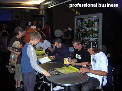 Crossfire has come a long way since the days of little B&W fanzine pamphlets and blagging the odd handshake with a pro. Today it’s worldwide recognition and Champagne dinners. Well, almost… DVS were in town for the premiere of their first ever video, ‘Skate More’, and Crossfire had been invited to rub shoulders with the pros and sip on complimentary drinks. To tell you the truth, the usual roll call with a video premiere is that we end up scrambling for tickets until the last minute, get squashed with the rest of the sweaty fans as we queue up anxiously awaiting the curtain-rise, spot a pro in the distance and then head off to the off-license for a couple of cold ones and an over-the-top trick by trick analysis of what we just saw. Yeah! We are the media, promise!