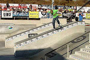 Notable stand outs were Alexis Misurov smoking a cigarette and listening to his I-pod during his run and still smacking down a huge frontside flip down the 11 stair, Ryan Sheckler’s backside flip and Pat Channita’s blonde wig. Jereme Rogers led his team to victory and the first place, closely followed by the child prodigy Nyjah Huston.