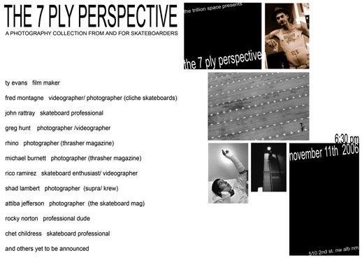 If by any chance you are passing through Albuquerque on November 11th, may we suggest you drop by The Trillion Space, an art gallery hosting The 7-Ply perspective show. The 7-Ply is a photography exhibition featuring work by John Rattray, Fred Mortagne, Greg Hunt, Atiba Jefferson, Micheal Burnett and more.