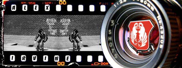 Over the years various talented skate photographers have momentarily covered the Scottish skate scene but until the tattooed frame of Alex Irvine came haring down the hillsides from Aberdeen none have stayed around for long. Alex has been leading the charge of documenting the utter carnage that comprises Scotland’s skateboard community for a good 5 years now and shows no signs of stopping, (thank God).