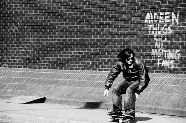 Rock McCrank strumming guitar making up songs is inspiring, pure comedy, lightens the mood. I like shooting pictures with people who can have a laugh about things. Black Flag, Slayer, Dave Dudley and Brujeria all good to listen to before skating, but with photography it’s not really beneficial to be all fired up to then sit on yir arse for hours at a time.