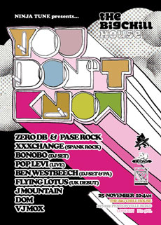 Ninja Tune are putting on 3 gigs on the same night – Saturday November 25th – in association with The Big Chill House as part of the first ever You Don’t Know club night.