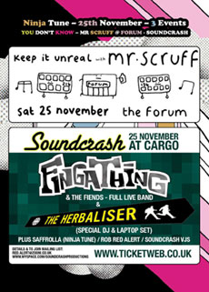Mr Scruff is to play The Forum, Herbaliser will be at Cargo with Fingathing and The Big Chill House will host Zero DB, Pase Rock, XXXchange, Pop Levi, a Bonobo DJ set, the UK debut of Flying Lotus and more, for free!