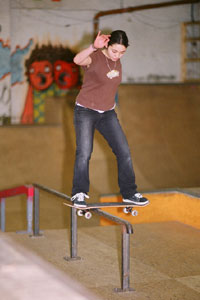 The Boardroom Skatepark, Leicester, hosted it’s first girl skate jam, organised by park local Becky Wood in December. There were no competitions, no spectators just a groups of ladies having a real good time ripping up the park, sessioning rails and random blocks. The Birmingham lasses, Katrina and Rogue’s Exotic Emma plus honouree brumster Lois Pendlebury, were first to arrive and they went straight in to hammer the bowl.