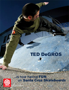 Possibly the most cringe worthy sub-title we’ve ever run in the skate news (Sorry Ted), but it’s pretty simple and long overdue in my honest opinion. Canadian Ted joins the professional ranks of the newly re-furbished Santa Cruz Skate team.
