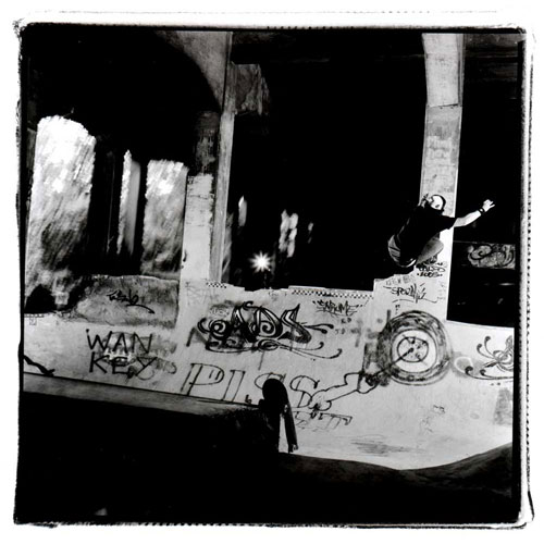 Well, the party was shutting down and everyone went back to this beautiful hotel, it was ridiculous. Could you imagine, Ali Boulala, every pro skater on the planet who is on Etnies, turns up at this hotel, we get to the bar and it’s shut! So everyone’s like ‘fuck, what are we going to do?’ and the concierge comes out and says ‘Ah, if you go down zee road zere is a little discothèque’ and we thought we were in… and it turned out to be a whore-bar.
