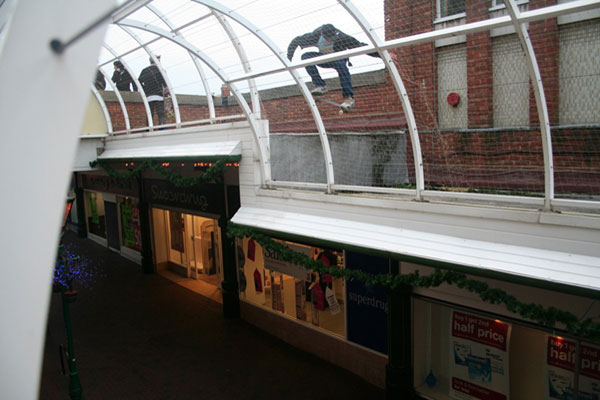 Jack Brooks takes a snipers view of Dave Edwards hucking out a nollie above Margate Town.