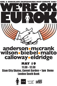 Girl and Chocolate Skateboards team riders hit London’s Southbank this Saturday on their EurOK European Tour.