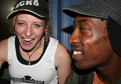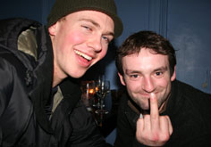 Unfortunately I couldn’t assist the entire session because my judgemental skills were needed over at the ramps. The midi ramp is the first thing you see when you step into Bay66, and it is definitely the centre of attention when it comes to mad trickery. Waiting to drop in and snake one another for the chance to win some dough, I spotted Danny Wainwright, Churchill a.k.a. Wade Speyer (c.f. Handlebars), Greg Nowik, Stevie T., Ross and Raemers, Bearman Joe Habgood and a handful of others. When you’re judging a best trick jam, the rules are like those of downhill slalom skiing: best trick will win until someone does something better, sort of like fastest time wins until broken. So, what was going down? Mr. Nowik had all the photographers setting their apparatus to mutli-shot for a possible sequence of a blunt 360 flip in, whilst Danny braved another attempt at connecting board and ceiling with a ridiculous frontside nosebone. Sadly though, they both had competition…