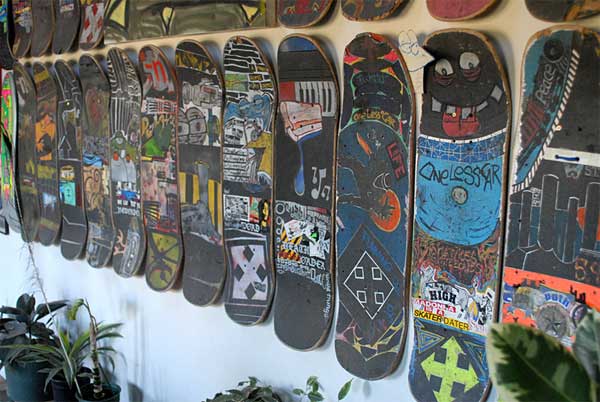 I don’t know how it formed, but the skateboard is such the raddest thing. have you ever had an old Santa Cruz or H-Street board? The top passes? I used to fall in love when i got one of those, so i guess i’d have to do it justice when i did the griptape. I couldn’t imagine skateboarding without creativity. over the years i’ve spent a lot of time on my boards, so i end up keeping them and they cover most of the walls at my dad’s house.