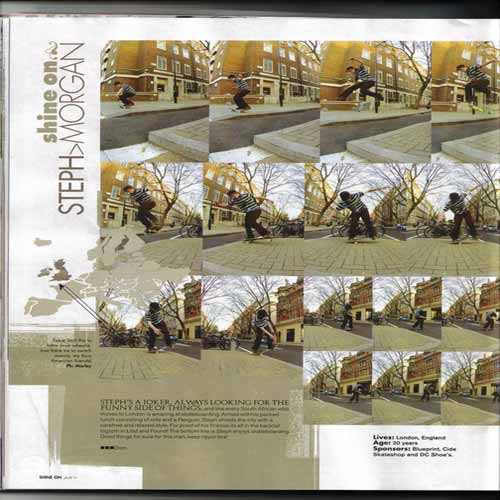 Steph Morgan: fakie 360 flip fakie nose manual over a gap [above]