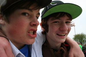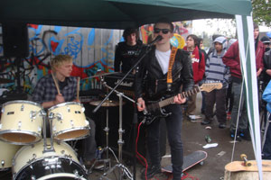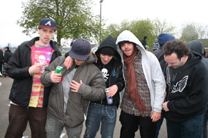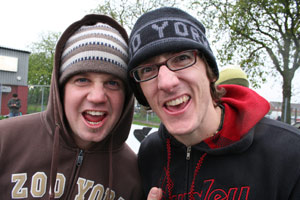 Eventually the damp, cold weather kicked in and stopped play, but everyone was up for it and the atmosphere rocked. Free shit was tossed out, punk bands played raw hardcore and as the booze kicked in, the traditional, beer can and shoe fight took centre stage!