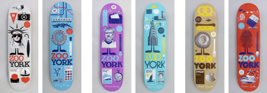 Zoo York have collaborated with Mark Owens and Matt Owens on a New York artist series. The six boards represent the socio-cultural realms of Literature, Architecture, The Arts, Transit, Food and Tourism representing New York’s “Urbane Jungle.” Look out for the Zoo York team visit to the UK here.