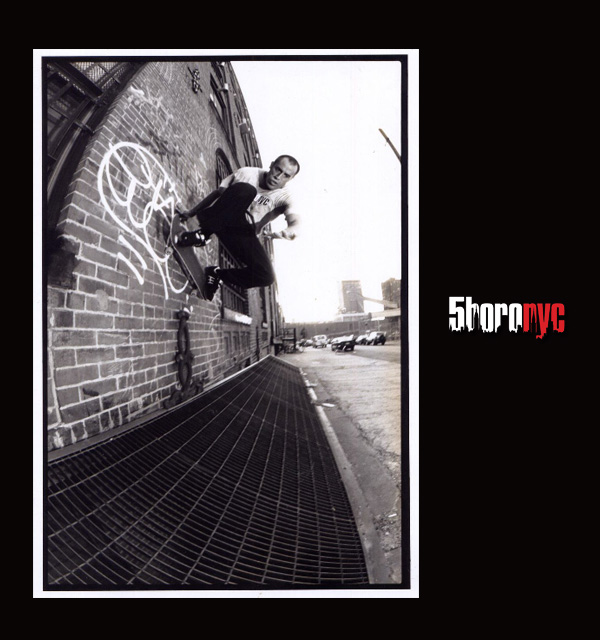 I guess you could say the history of 5Boro is the history of me as a skateboarder, skateboarding in NYC. Now that the company has been around for 12 years, the whole idea behind the company has been developing since I first skated in the great city of New York 25 years ago. In 1983 my Mom managed a store on the corner of 6th Avenue and Downing St. in Greenwich Village. At the time, I lived in New Jersey and my Mom used to always ask my older sister and I if we wanted to help out at the store to get some extra money. I would go in on weekends and my job basically consisted of skating around Greenwich Village running errands. I would deliver things, go out and get lunch for the employees and I got to explore the village on my way to and from place to place. I started to go into the city more often on and was less interested in running errands and more interested in exploring the city. I would skate downtown and uptown, farther and farther every weekend, and I used to get so lost I would just keep going till I saw something I recognized. I discovered so much that summer. Soho, Tribeca, Chinatown, the financial district, the L.E.S., Chelsea, pretty much all downtown.