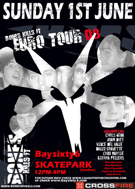 On Sunday the Bones Team will be visiting London’s Bay Sixty 6 Skatepark in association with Crossfire as part of their European Tour.