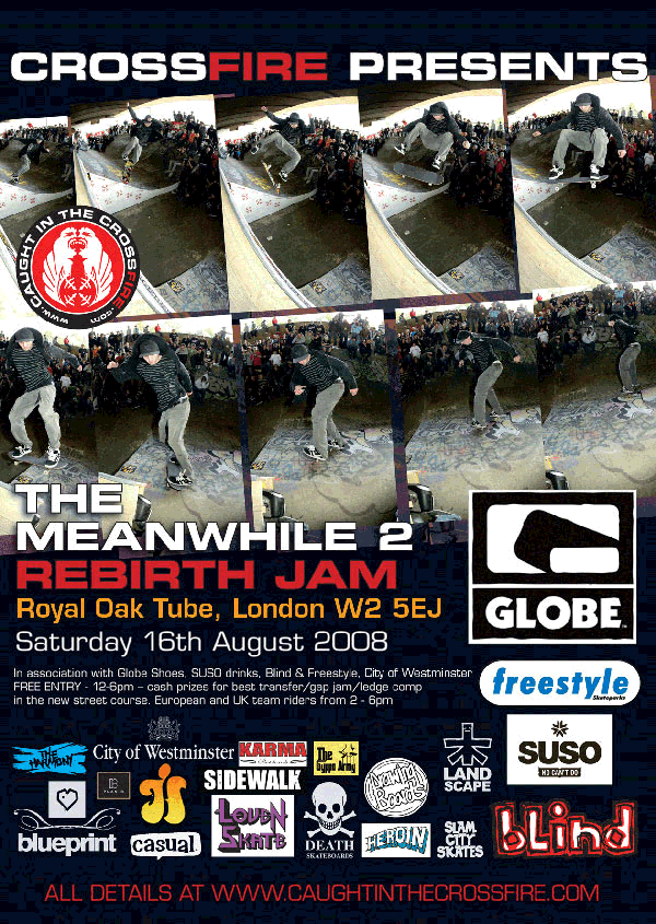 The date set for this years Gap Jam is this Saturday 16th August at Meanwhile 2, Royal Oak, London. The event is in association with Westminster Council, Globe Shoes, SUSO Drinks, Freestyle Skateparks, Blind Skateboards, Slam City Skates, Blueprint, Death, Heroin,