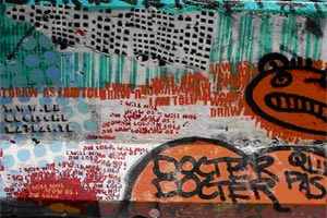 Have a little shot of a couple of stickers put up in LA by an artist named Zato One. Simple and yet really effective, cool as you like. In fact, if you see any stickers or graf that you really like, feel free to send the pictures in to me at the address at the bottom of the page. I always love seeing new art.