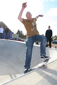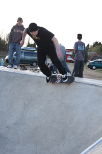 But you don’t take to the road with the Death Squad and not see some action, and it was not long before Horsey managed to beanplant fakie this bowl with ease whilst Mark Nicolson (with freshly cut hair making him more of an Axl Rose lookalike) tried his best to fingerflip the hip, but mainly gave this bowl a damn good fucking rinsing it deserved.