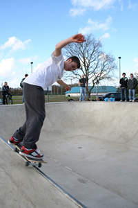 But saying that, the overall park is fun with great lines once you remove the chav kids with snotty green noses and heroin addictions at 12, but what do you expect being built near what looked like a Leisure Centre or Football Ground? This has its advantages though as you are less likely to be mugged here than in the middle of an estate where most skate parks are being dumped thesedays! The overall feel of the park is fantastic and the session ripped open leaving local kids stoked! This is the sort of park that needs a credible annual event.