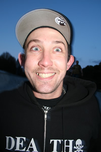 Herrick was first to handplant the vert extension, Horsey bonelessed into the main bowl form the extension! Fuck yeah! Camo Pete, Steak and I found that the faster you go around this place, the more fun it is once you remove the kids in the way on roller skates! Zorlac decided that his trademark feeble grind had to be left on the big bowl before we split and as that was going down, Steak was warming up the vert extension with a nose pick for Styley’s photographic desires. The departure of Rayman, Punk Darryl and the Gormster left a hole for people to view the skills of new Death recruit – Boots, to destroy the overly steep handrail with a kickflip front boardslide and Horsey got the last bit of action before the sun went down with a kickflip over the fucking lot, stairs and all.