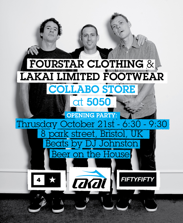 Lakai and Fourstar are set to open their first Collabo Store so you’re all invited to 50-50 in Bristol for the grand opening party tomorrow on October 21st!