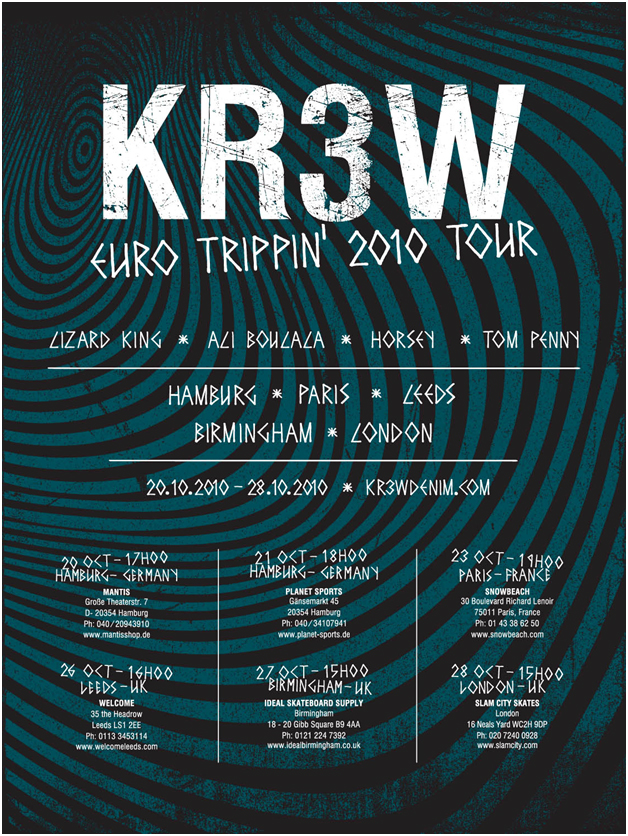 Hot off the press! The Kr3w team will be hitting our shores later this month for some in-store signings. Ali Boulala, Tom Penny, Lizard King and Horsey will be appearing at Welcome, Ideal and Slam as well as various European locations.