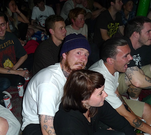 Here’s my version of the Smay incident. Drunk, stoned, late at night, sounds like the perfect time for hill bombing. Potter of course gets naked, when doesn’t he? I can only describe it as snowboarding on concrete. I’ve never been that fast on a skateboard before. So drunk I can hardly see, which helps when there’s a 6ft man with his dick out, we all wait for everyone get to the bottom including our ski lift / tour van. Hmm…still waiting, no van, no Sam. Oh look there they are, everything’s fine, we can get back in the van and do it again, well everything’s fine apart Sam’s got serious concussion and there’s blood pouring out the back of his head! One last hill bomb before we go to the hospital anyone? No? Fair enough.