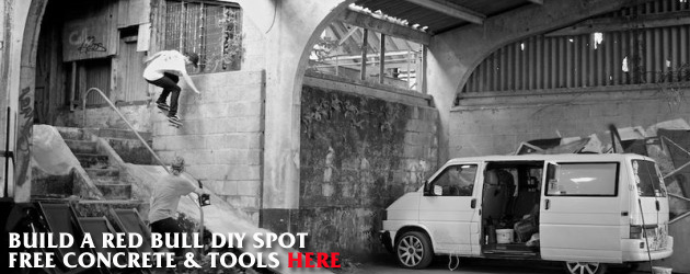 Build your spot, instagram it, tag it #RedBullDIY and Red Bull’s team riders will pick the top 3 on July 30th where the winner will have loot to spend in the skate shop of origin.