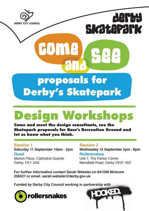 The design consultants for the upcoming skatepark construction in Bass’ Recreation Ground, Derby have organised some time in September to hear what you guys skating the thing have to say about the plans.