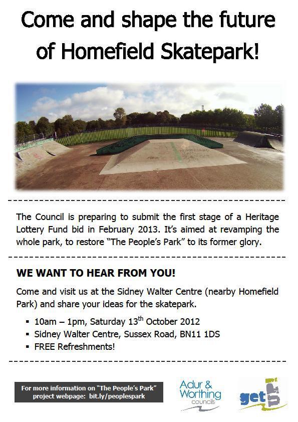 Get your say on the future of Homefield Skatepark on Saturday 13th Oct between 10am-1pm at Sidney Walter Centre (nr Homefield Park) on the South Coast.