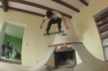 Whether it’s a backside bonesless over the fireplace, or a wallride in the dining room, this old house that was transformed by Philipp Shuster‘s and friends sure looks like a good time in Salzburg. Find and build people.